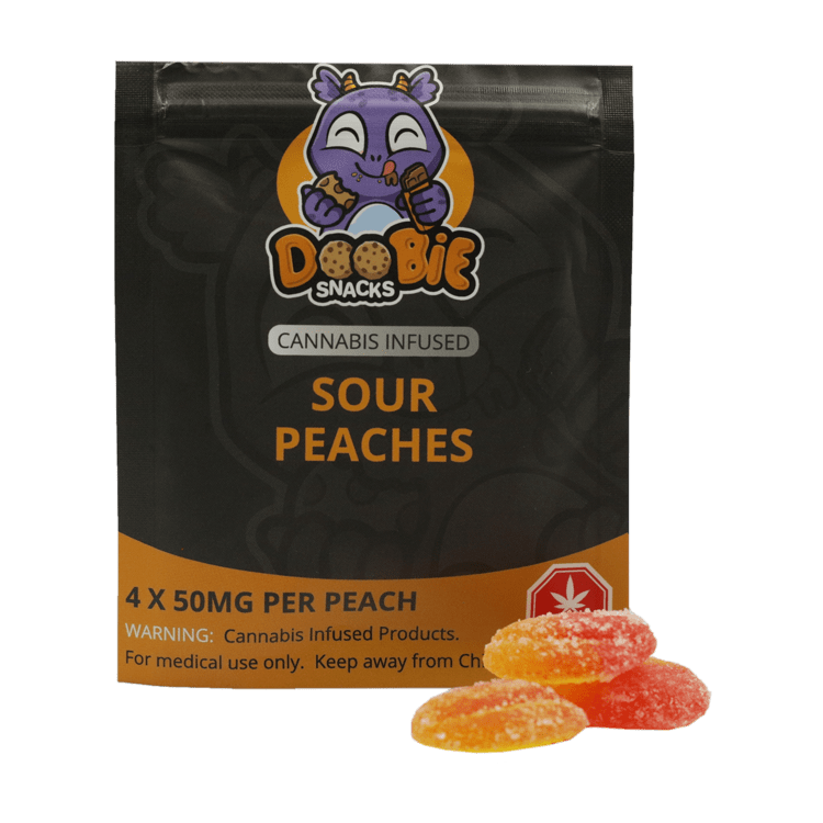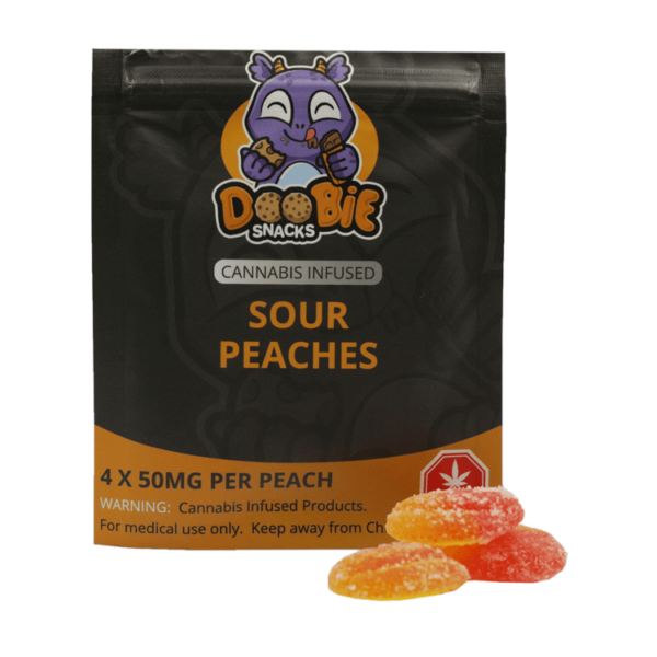 Doobie Snacks – Sour Peach Gummies – 200mg THC | BC Weed Edible Canada